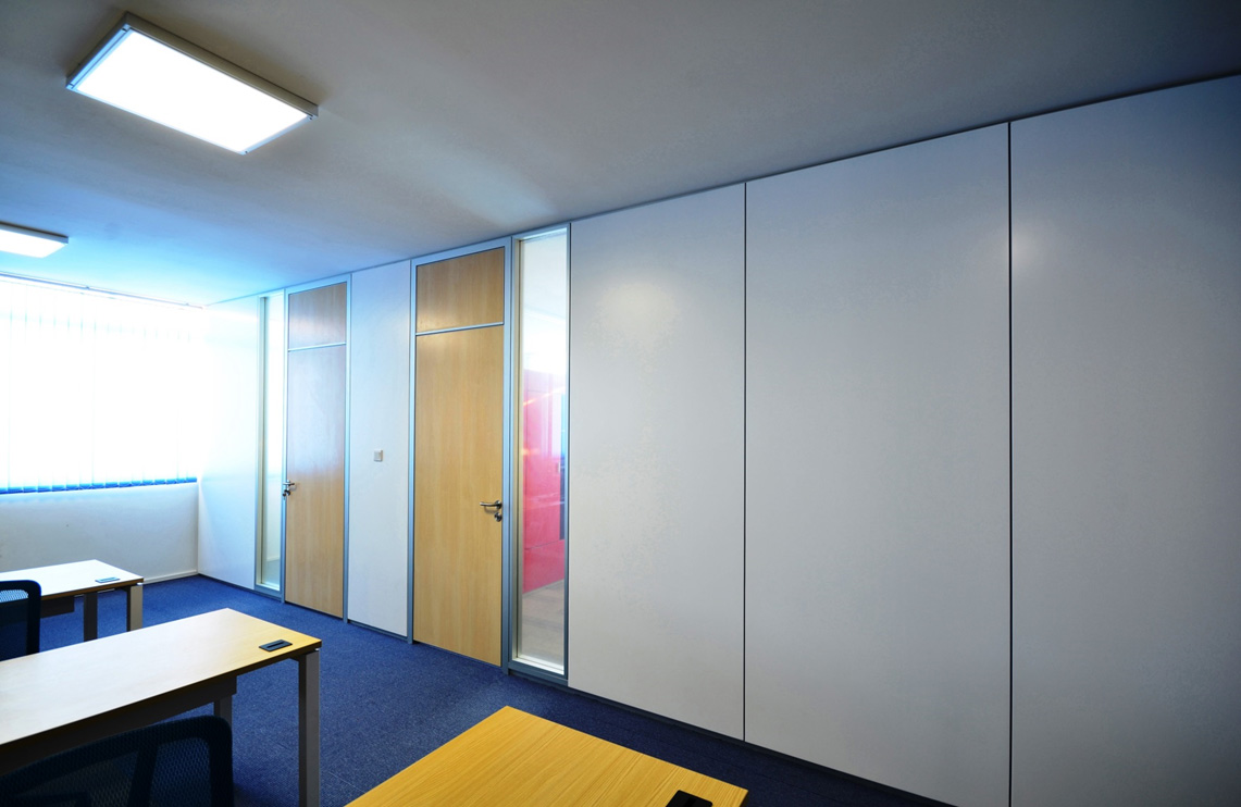 KLIO Demountable Solid Partitions are made of galvanized steel and aluminium components of 100mm thick, with 6mm groove separator between the modules. Being a demountable system string provides accessibility for power, data wiring services even after the installation.