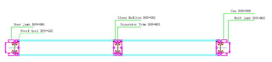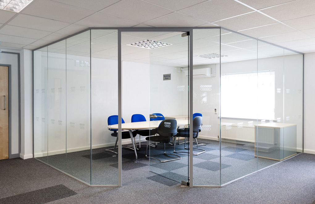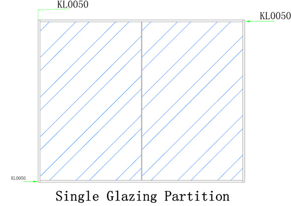 KLIO sleek single glazed partitions are made with anodized aluminium profile of size 45mm x 25mm with 10 and 12 mm toughened clear safety glass. The partition is available in, other types of glass including colored, frosted, laminated or fire and sound rated glass.