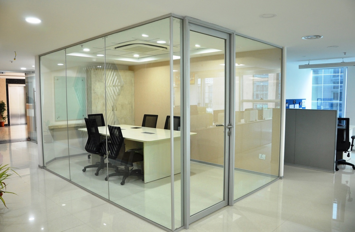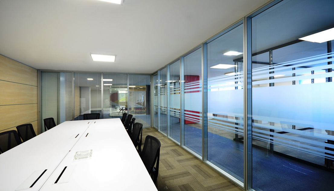 KLIO double glazed partitions are made with anodized aluminium profile of size 100mm x 40mm with 10 and 12 mm toughened clear safety glass. The partition is available in, other types of glass including colored, frosted, laminated or fire and sound rated glass.